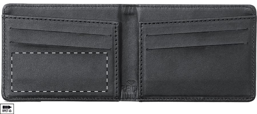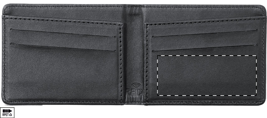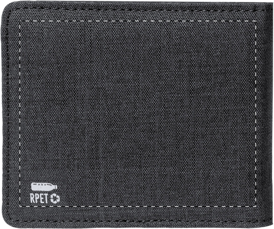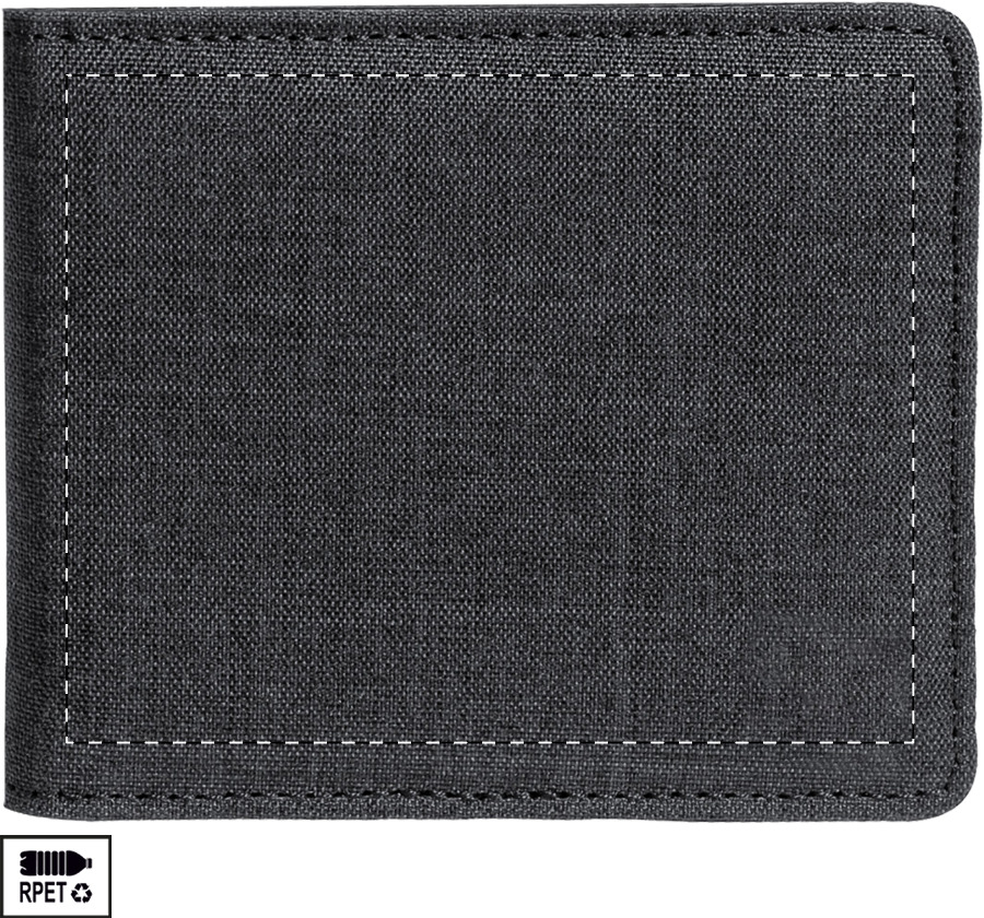 Portemonnaie aus RPET Polyester mit RFID Ausleseschutz und 6 Kreditkartenfächern.