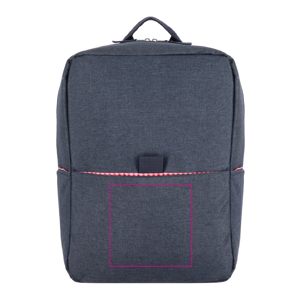 Stylischer Rucksack aus R-PET-Material mit einer melierten Oberfläche. Dieser thermoisolierte Rucksack hält Ihre Speisen und Getränke auf dem Weg zum Picknick schön kühl. Das glatte karierte Innenfutter verleiht dem Rucksack ein ansprechendes Aussehen und ist leicht zu reinigen. Auf der einen Seite ist eine Halterung angebracht für z.B. eine Flasche Wein.